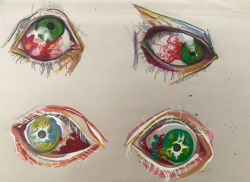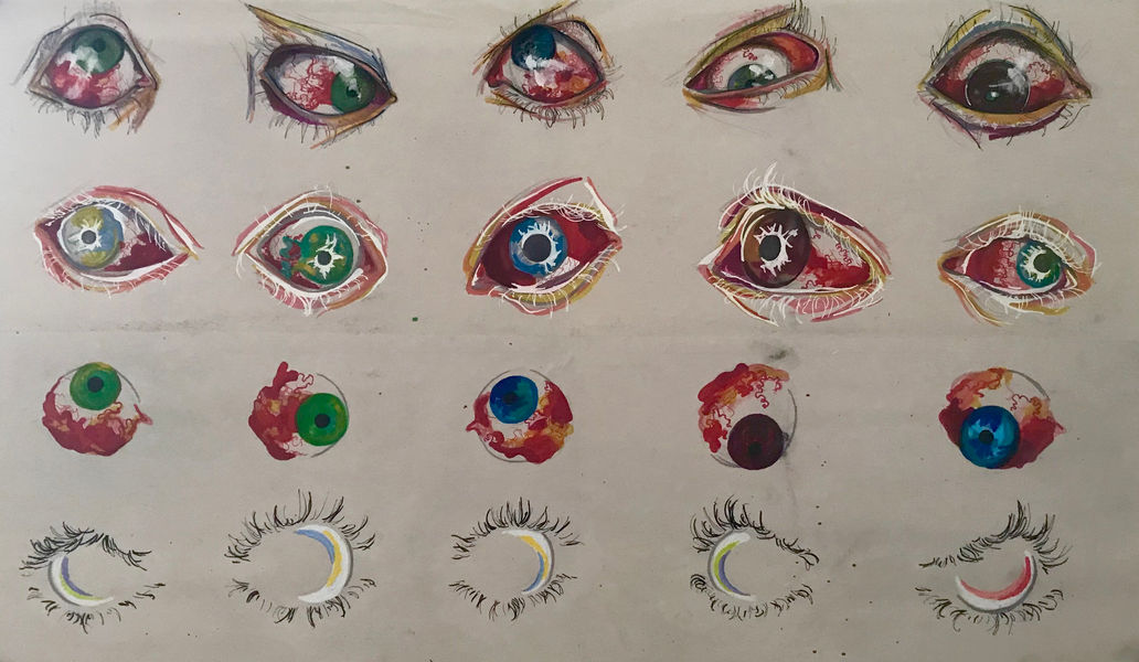 Within my series I wanted to alter the symbol of the eye, and examine it within a whimsical and harsh perspective, breaking down the anatomy and observing it as a structure rather than in a purely medical sense.